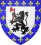 - d'argent au lion de sable tenant une hache de gueules, à la bordure d'azur semée de fleurs de lys d'or.