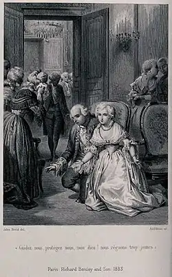 De nombreuses personnes sont là pour constater la venue du nouveau-né : l'accoucheur de la famille royale Jard ; le chancelier Guillaume de Lamoignon de Blancmesnil, le garde des sceaux Jean-Baptiste de Machault d'Arnouville et le contrôleur général des finances Jean Moreau de Séchelles, des porteurs, gardes du corps et la sentinelle. Le dauphin, en robe de chambre, accueille chacun en disant : « Entrez, mon ami, entrez vite, pour voir accoucher ma femme. »