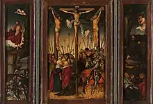 - 1506-1520 : Crucifixion, huile sur panneau, 670 × 465 cm, Statens Museum for Kunst, Copenhague[19]
