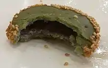 Il s'agit d'une pâtisserie à base de taro et farine de blé, parfumée au thé vert et sucrée, ayant la forme d'un disque épais, et autour de laquelle sont parsemées des graines de sésame.