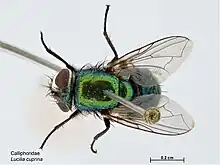 Lucilia cuprina est une espèce d'insectes diptères brachycères de la famille des Calliphoridae et du genre Lucilia. Au stade larvaire, cette mouche verte cosmopolite est saprophage et nécrophage. Dans certaines régions, elle est ectoparasite de mammifères et plus spécifiquement des ovins. Il s'agit d'une myiase dont l'impact agricole est particulièrement important au sein des élevages australiens. Beaucoup plus rarement, cette espèce peut également parasiter l'espèce humaine.