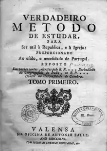 Seize ans avant la publication de l’Émile de Rousseau, dans son œuvre Verdadeiro Método de Estudar, publiée à Valence en 1746, le philosophe Luís António Verney défend un enseignement basé sur les réalités concrètes et l'expérience, une instruction élémentaire universelle et publique sans distinction de sexe et de classe, entièrement financée par la Couronne, et une réforme en profondeur de l’État. Plus tard, dans huit longues Lettres (Cartas) écrites en exil en latin à un fonctionnaire du Secrétariat des Affaires Étrangères, Verney développe ses idées les plus radicales. Il explique notamment que les rois ne sont pas propriétaires, mais simplement administrateurs de leur royaume, et que leur autorité n'est justifiée que par le progrès matériel et spirituel qu'ils apportent aux peuples. Il théorise l'idée de gouvernement ministériel, qu'il justifie par « l'incapacité d'un seul homme de tout voir par lui-même ». Dans le domaine religieux, Verney prêche la tolérance, la règlementation laïque de l'Inquisition, la simplification de la censure, la fin des autodafés, des procès secrets et délations pour judaïsme et des condamnations « dérisoires » pour « pacte avec le diable », afin d'instaurer la paix civile et de conserver dans le pays les élites intellectuelles et économiques. Au niveau économique, il préconise le déblocage et la baisse des taux du crédit à la petite agriculture et à l'industrie, des mesures pour restreindre la taille et l'influence des grandes propriétés foncière du clergé, ainsi qu'une réforme de la justice et la laïcisation du système d'enseignement jusque là aux mains des jésuites. Il demande également la généralisation de l'enseignement primaire, même dans les villages les plus reculés. Précurseur de Tocqueville, il suggère la mise en place de mesure législatives encourageant la constitution d'associations et de corps afin d'assurer la cohérence sociale dans une société en mutation tant du point de vue économique que social. Enfin, il demande des mesures législatives pour décourager les préjugés de lignage et racistes alors fréquents au sein des élites portugaises[16].