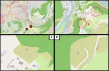 La lunette de Tousey (à gauche) et celle de Trois-Châtels (à droite) en 2011. | ||||