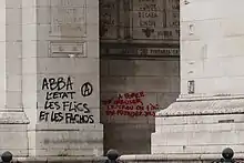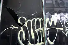 L'article 322-1 du Code pénal prévoit aussi que « le fait de tracer des inscriptions, des signes ou des dessins, sans autorisation préalable, sur les façades, les véhicules, les voies publiques ou le mobilier urbain est puni de 3 750 euros d'amende et d'une peine de travail d'intérêt général lorsqu'il n'en est résulté qu'un dommage léger ». Depuis , il est complété par l'article 322-3 qui prévoit que la sanction est relevée à 15 000 euros d'amende et d'une peine de travail d'intérêt général, lorsque, entre autres, « le bien détruit, dégradé ou détérioré est destiné à l'utilité ou à la décoration publiques et appartient à une personne publique ou chargée d'une mission de service public »[14] (par exemple, les radars automatiques).