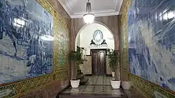 Le hall d'entrée du bâtiment est décoré de grands panneaux d'azulejos de l'artiste portugais Jorge Colaço. Un panneau représente le roi Alphonse Ier et le Miracle d'Ourique, et l'autre représente Henri le Navigateur. Il y a aussi des représentations de navigateurs et de guerriers médiévaux maures et portugais.