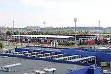 Fin , le stade modulaire de 7 998 places a été réalisé en moins de trois mois à Vénissieux pour un coût de 11,2 millions d'euros HT comprenant l'infrastructure en général ainsi que le montage de l'enceinte et la pelouse, pour un premier match en Top 14 en [18]. À la fin de la saison 2013-2014 qui voit la montée du club à l'échelon supérieur, Yann Roubert le président du LOU confirme la volonté d'agrandir le stade et de porter sa capacité de 8 000 à 12 000 places[19].