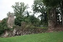 Également à l'ouest, la Via Agrippa de l'Océan dont le tracé à la sortie de la ville haute est connu par des textes anciens et par de nombreuses traces archéologiques : carrefour des rue de la Favorite et avenue Barthélemy-Buyer[n 1], puis rue Pierre-Audry, rue du Sergent-Michel-Berthet, rue des Tanneurs, place Valmy puis rue de Bourgogne. Les fouilles de la rue de Bourgogne ont permis de dégager la voie sur quarante-trois mètres. À cet endroit, « la rue présente un radier en élévation de 6,60 m de largeur recouvert de galets et encadré de deux fossés très larges (12 et 15 m). Des tombes jalonnaient la voie »[b 2],[n 2].