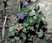 Le mouron rouge ou mouron des champs (Lysimachia arvensis, synonyme : Anagallis arvensis[1]) est une espèce de plantes à fleurs de la famille des Primulaceae selon la classification classique et selon la classification phylogénétique APG IV (2016)[2] (mais des Myrsinaceae selon la classification phylogénétique APG (1998)[3] et la classification phylogénétique APG II (2003)[4]).