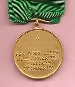 Elle a été instituée par le roi Carlo Alberto de Savoie de Sardaigne, par les brevets royaux magistraux du 19 juillet 1839, sous le nom de "médaille mauricienne pour mérite militaire de dix années"[1], et dans le royaume d'Italie, elle a été réglementée par le décret royal du 21 décembre 1924.
