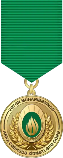 La médaille pour les services à l'arrière pendant la guerre patriotique (en azerbaïdjanais: «Vətən müharibəsində arxa cəbhədə xidmətlərə görə medalı») est une médaille de l'Azerbaïdjan. La médaille a été créée à l'occasion de la victoire de l'Azerbaïdjan dans la deuxième guerre du Haut-Karabakh[1].