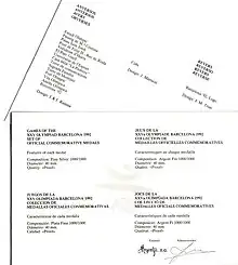 Le , le chef de la direction de l'organisation des Jeux olympiques Barcelona'92, Josep Miquel Abad et la gérante de la société Argentfí SA (Société avec siège à Barcelone qui a cessé son activité en 2001), Josefa Martínez Ortega, ont signé un contrat en vertu duquel le COOB’92 (Comité Organisateur des Jeux Olympiques Barcelona '92) octroyait la concession à cette société pour la fabrication, l'émission et la commercialisation de la série de médailles commémoratives officielles des Jeux de la XXVe Olympiade d'été.