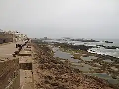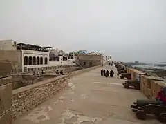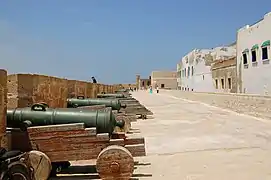 - des remparts de plus de 200 m de long, côté atlantique, de style Vauban, avec des plates-formes d'artillerie Sqala de la Kasbah, et Sqala du Port, avec nombreuses échauguettes, et batterie d'une vingtaine de vieux canons espagnols historiques en bronze du XVIIIe siècle...