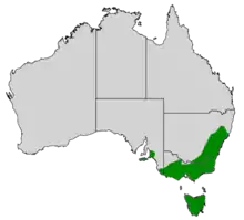 Des populations dispersées de Méliphage à croissants ont été répertoriées dans les Central Tablelands, la Mid North Coast et dans la vallée Hunter en Nouvelle-Galles du Sud, et l'espèce est bien répandue dans cette région au sud du parc national de Dharug et à l'est de Bathurst. Dans le Victoria, il est très répandu au sein d'une zone s'étendant de la frontière avec la Nouvelle-Galles du Sud jusqu'à Wallan au sud-ouest, avec quelques populations parsemées plus à l'ouest. Il est très courant en Tasmanie, excepté dans la partie nord-est de l’État où sa présence est plus rare. Dans le Sud-Est de l'Australie, il se cantonne aux forêts sclérophylles[9], où des populations isolées sont répertoriées dans la chaîne du Mont-Lofty et sur l'île Kangourou. Il lui arrive de sortir de son aire de répartition habituelle, en réponse à la modification de son habitat. Les densités de populations observées sur le terrain varient entre 0,3 oiseau par hectare près d'Orbost, et 8,7 couples par hectare dans la forêt de Boola Boola, également dans l'État de Victoria[1].