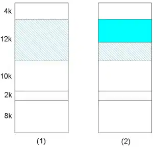 Les systèmes paginés rencontrent un problème de fragmentation interne : de la place est perdue à la fin d'une page. Les systèmes segmentés connaissent un problème de fragmentation externe : des espaces entre des segments sont trop petits pour loger de nouveaux fragments, cet espace est donc perdu.