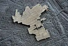- d’une plaque de bronze d’une taille 60 sur 60 cm qui présente les contours du terrain du ghetto et le plan des rues de Varsovie d’avant-guerre (avec le lieu où se trouve le mémorial marqué).