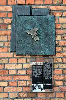 - Ulica Władysława Andersa, à l'angle d'Ulica Świętokrzyska – la plaque commémore l'une des principales portes du ghetto, rue Nalewki à l’époque. Le à 5h30 du matin, les troupes allemandes accompagnées des troupes lettones et ukrainiennes sous la direction de Ferdinand von Sammern-Frankenneg sont entrées au ghetto par cette porte. Elles se sont heurtées à la résistance armée de combattants juifs[5] qui a fait naître le soulèvement du ghetto de Varsovie.