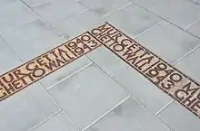 - de bandes de béton d’une longueur de 25 mètres avec une inscription de fonte en deux langues MUR GETTA 1940/GHETTO WALL 1943 mises au trottoir ou au gazon qui indiquent les localisations des fragments du mur du ghetto. La date 1940-1943 n’est que symbolique, car la plupart d’endroits ont été exclus du ghetto dans les années 1941-1942, par contre l’un a été inclus au ghetto en , et les deux en .