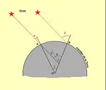 On mesure, aux deux points extrêmes de la triangulation A et I, la distance zénithale d'une étoile connue. Le mesurage s'effectue avec un secteur qui est un instrument adapté à l'opération. La différence entre les deux mesures donnera la différence de latitude entre les deux points.