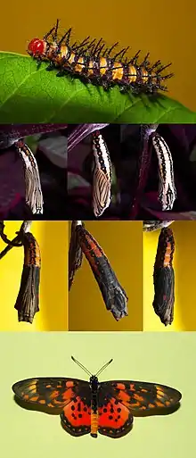 Note : l'amétabolie ne concerne que les insectes aptères ne subissant pas de métamorphose à proprement parler, puisque l'adulte reste la copie conforme de la larve. Celle-ci étant considérée comme un développement direct, elle ne sera pas catégorisée ici comme une métamorphose.