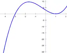- Dans la deuxième itération, une IQI entre (a1; f(a1)) = (−4; −25) et (b0; f(b0)) = (1,33333; 0,48148) et (b1; f(b1)) = (1,23256; 0,22891) donne 1,14205; cette valeur est entre (3a1 + b1) / 4 et b1. De plus, l'inégalité |1,14205 − b1| ≤ |b0 − b−1| / 2 est satisfaite; cette valeur est donc retenue. Enfin, comme f(1,14205) = 0,083582, on pose a2 = a1 et b2 = 1,14205;