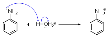 La méthode de Lumière–Barbier peut par exemple être utilisée pour acétyler l'aniline. Dans un premier temps, l'aniline est dissoute dans l'eau grâce à un équivalent d'acide chlorhydrique. La réaction acide-base entre les deux protone le groupe amine de l'aniline et forme ainsi l'ion anilium, soluble dans l'eau, alors que l'aniline est elle insoluble :