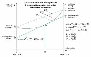 En conséquence, les grandeurs molaires partielles peuvent être déterminées graphiquement par les interceptions de la tangente et des axes des corps purs[1] :