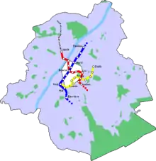 À l'est et à l'ouest de la ville, le métro réutilise des emprises prévues à l'origine pour la mise à quatre voies des lignes 26 et 28 de chemin de fer, assiettes qui n'avaient jamais été utilisées.