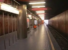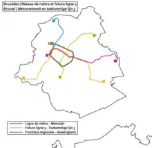Le métro de Bruxelles est un moyen de transport en commun rapide desservant une grande partie de la région de Bruxelles-Capitale en Belgique. Il consiste en quatre lignes de métro lourd en site propre, les lignes 1, 2, 5 et 6, totalisant 39,9 de kilomètres de voies[2], dont 37,5 km souterraines[3]. Le réseau prémétro consiste en trois lignes de trams (lignes 3, 4 et 7) partiellement souterraines qui offrent, sur la majeure partie de leurs parcours, un service comparable à celui du métro. Le métro possède cinquante-neuf stations de métro lourd, quinze de prémétro, sept ayant une correspondance avec une autre ligne. Avec 39,9 km (lignes de prémétro non comptées), il est classé 92e du monde en longueur.