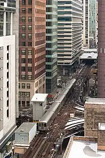 Le métro de Chicago (communément appelé Chicago ‘L’ pour « Elevated »[4]) est un réseau de transport en commun ferré qui dessert la ville de Chicago et sa proche agglomération, dans l'État de l'Illinois, aux États-Unis. Il est principalement connu pour une de ses particularités : il est en grande partie aérien[5],[6].