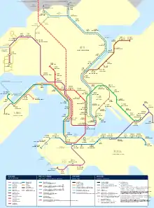 Les 9 lignes + la ligne « Airport Express » + le réseau de métro léger :