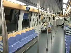 Trois types de matériel roulant sont utilisés pour le transport de passagers, autant sur la ligne Nord-Sud que la ligne Est-Ouest. Ils sont alimentés en courant continu à 750 volts par troisième rail, chaque train fait six voitures[18], et utilisent le système ATO (Automatic Train Operation) similaire à la ligne Victoria du métro de Londres.