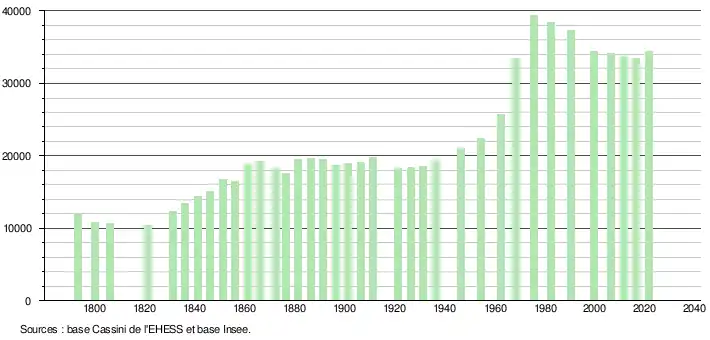 Au dernier recensement (2021), la commune comptait 34 448 habitants tandis que son aire d'attraction, qui s'étend sur trois départements, rassemble 138 633 habitants. Il s'agit ainsi de la sixième plus grande ville de Bourgogne-Franche-Comté derrière Dijon, Besançon, Belfort, Chalon-sur-Saône, Auxerre et devant les villes de Nevers et Sens.