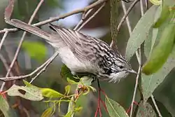 - (en) Cet article est partiellement ou en totalité issu de l’article de Wikipédia en anglais intitulé « Striped Honeyeater » (voir la liste des auteurs).
