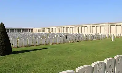 Le mémorial est dédié aux morts des IVe et Ve armées britanniques. Il constitué d'un mur orné d'un péristyle sur trois des côtés du cimetière, et incorporant une croix du Sacrifice. Les noms de 14 649 soldats morts sans sépultures sont gravés sur les murs, rangés par régiment ou unité. Parmi eux figurent 14 328 Britanniques et 321 Sud-Africains qui ont été tués entre le et le , pendant la bataille du Kaiser, la dernière grande offensive allemande vers l'ouest qui avait enfoncé le front allié et provoqué le recul de la 5e armée britannique jusqu'à la bataille de Villers-Bretonneux[1].