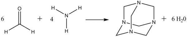 La méthénamine est obtenue par une réaction de condensation entre le formaldéhyde et l'ammoniac. Cette réaction peut être réalisée en phase gaz ou en solution.
