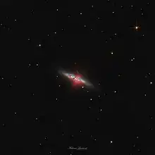 M82 (NGC 3034, aussi connu sous le nom de galaxie du Cigare) est une galaxie spirale située dans la constellation de la Grande Ourse. Sa vitesse par rapport au fond diffus cosmologique est de 348 ± 6 km/s, ce qui correspond à une distance de Hubble de 5,13 ± 0,37 Mpc (∼16,7 millions d'al)[1].
