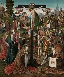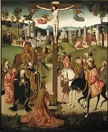 - Crucifixion du Rijksmuseum , huile sur panneau de 104,5 × 85,5 cm attribué à un successeur ;