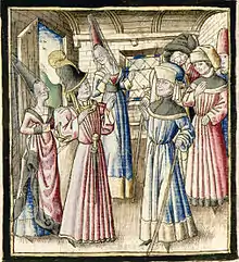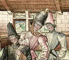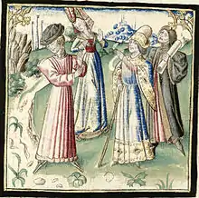 Les personnages sont une représentation des canons de beauté du XVe siècle. Les hommes avec de longues jambes, une taille fine et de larges épaules. Les personnages masculins de bonne naissance sont toujours coiffés, du haut chapel ou d'un « capuchon ".