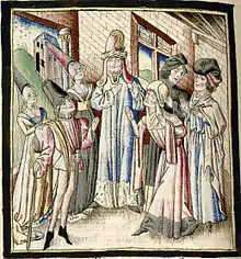 - ce livre de Boccace, dans une traduction de Laurent de Premierfait de 22 folios, contient cinq miniatures à la gouache de couleur.