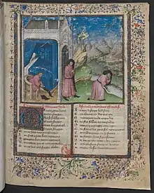 - Livre d’heures à l’usage de Besançon, 12 miniatures, vers 1450, La Haye, Bibliothèque royale, 76 F 12[7]