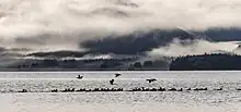Groupe en vol, parc national de Glacier Bay, en Alaska.