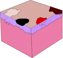 Les couleurs, formes et épaisseur des macules varient selon leur nature et la couleur de la peau