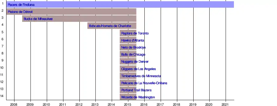 | 2014-2015 | Eastern | 1er | 28 | 22 | .560 | Finaliste | |||