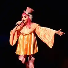- Nick Levine, de The Independent, remarque que la chanteuse "teste ses talents de comique avec une série de blagues osées et profite de l'occasion pour défendre son sens controversé de la mode[5].