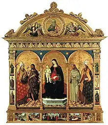 Il est commissionné le (noté en 1467 et de 1503 à 1508) pour le retable des Francescani de Terni.