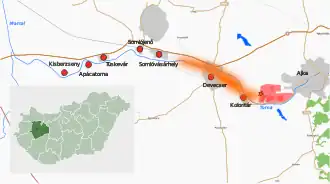 Le bassin de stockage de boues industrielles laisse alors s'échapper un flot d'environ 700 000 m3 (soit moins que les 1,1 million de mètres cubes initialement annoncés[10]) de boues rouges qui dévastent Kolontar, le village le plus proche, en submergeant une dizaine d'hectares. Des maisons et infrastructures sont également détruites ou très endommagée à Devecser et Somlóvásárhely.