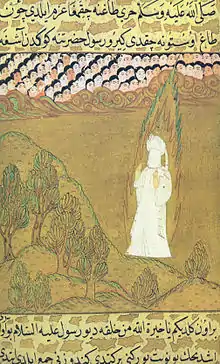 Mahomet effectue de nombreuses retraites spirituelles (appelées taḥannuth[78]), à l'instar de ce que font les hunafâ, des ascètes de tendance monothéiste qui annoncent la fin des temps[72]. Il y vit alors une expérience spirituelle forte[6].