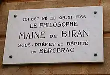 Pierre Maine de Biran, de son nom complet Marie François Pierre Gontier de Biran ([2] à Bergerac – à Paris), est un philosophe, précurseur de la psychologie qui appartient au courant du spiritualisme français, après avoir rompu avec la philosophie de la société des idéologues.