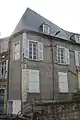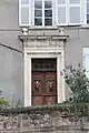 La maison est disposée selon le plan d'un trapèze rectangle allongé, avec une façade principale possédant un rez-de-chaussée exhaussé sur une étroite terrasse limitée par une bordure en grès. La porte d'entrée présente un bel encadrement en calcaire, mouluré d'un boudin précédé sur l'intérieur d'une baguette, d'un filet et de deux bandeaux. Le linteau est surmonté d'un entablement décoré, à l'architrave, de deux bandeaux sous un talon, à la frise sculptée d'une rangée de feuilles d'acanthe et dont la corniche supporte des urnes drapées chargées de fruits et de grappes retombantes. Cette porte est fermée par deux vantaux de part et d'autre d'un montant central sculpté d'une guirlande en chapelet à feuilles imbriquées ; chacun d'eux comporte trois panneaux superposés, dont celui du milieu est sculpté d'un masque léonin dans la gueule duquel s'articule un heurtoir en forme d'anneau en fer forgé. À l'angle, sur la tablette moulurée que porte en saillie un culot de feuilles d'acanthe, est posée une statue de la Vierge portant l'Enfant. À l'intérieur, un escalier central conduit à l'étage, aménagé dans une tour qui faisait autrefois saillie. L'escalier dessert des pièces aux portes avec dessus de panneaux sculptés et peints[1].