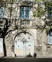 La globalité est deux bâtiments de plan rectangulaire. Le bâtiment principal est à 3 niveaux avec un toit terrasse et une balustrade. Des sculptures d'inspiration Renaissance couvrent entièrement la façade, tandis qu'une série d'ateliers se situent en fond de parcelle[2].